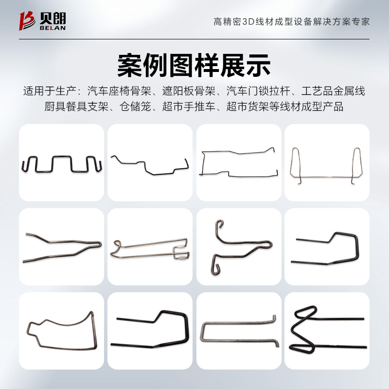 產品特點:適用于生產汽車零部件、汽車門鎖拉桿、工藝品金屬線、廚具餐具支架、倉儲籠、超市貨架、手推車等線材成型產品;送線箱采用四組同步送線,并自帶精度檢測裝置,保證送線精度及穩定性。